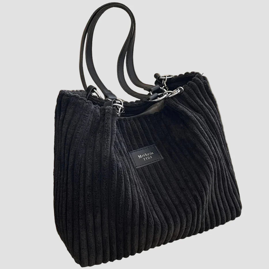 • Textura única y acogedora: La tela de pana gruesa ofrece una estética distintiva y cálida que eleva la bolsa más allá de las telas comunes, convirtiéndola instantáneamente en una declaración de moda cómoda.
