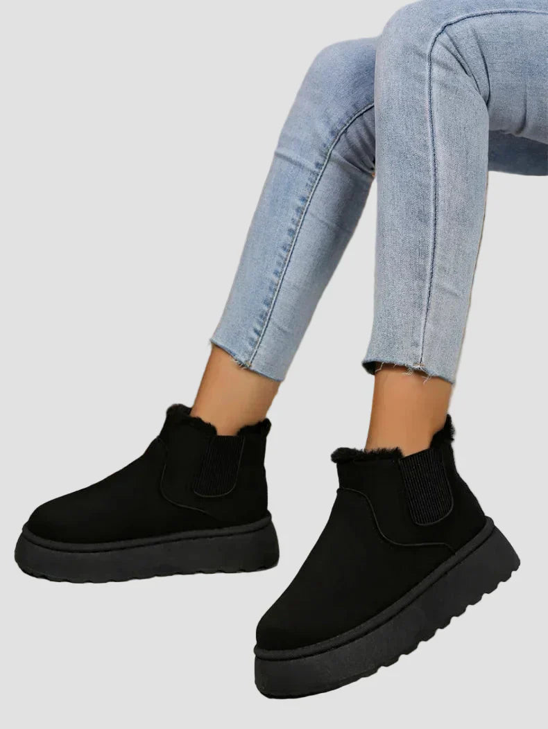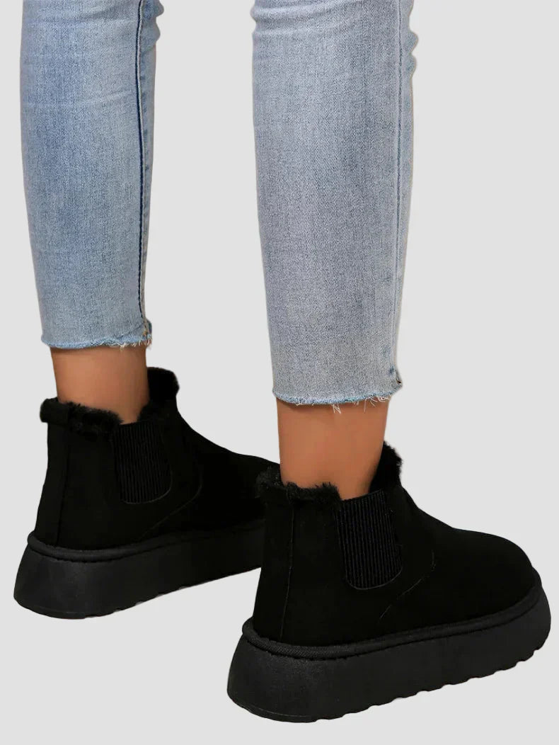 Cálidas y Lujosas: El suave material de forro de piel ofrece una excelente aislación térmica, manteniendo tus pies cálidos y cómodos, algo esencial para enfrentar el invierno.
