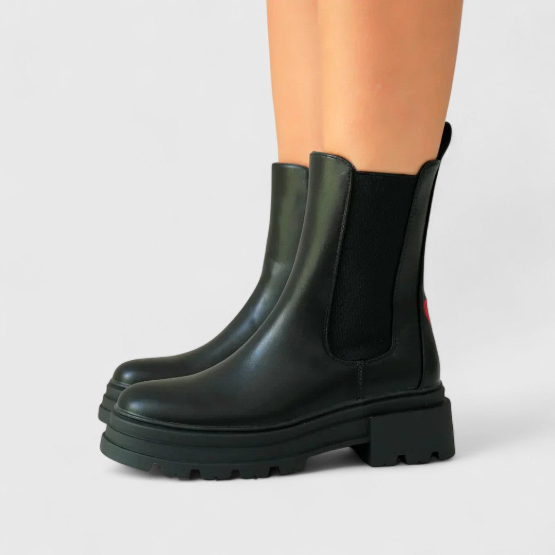 - Suela chunky resistente que ofrece estabilidad y un look moderno e imponente, asegurando comodidad incluso en desplazamientos diarios.