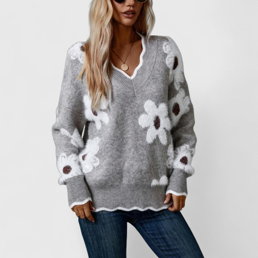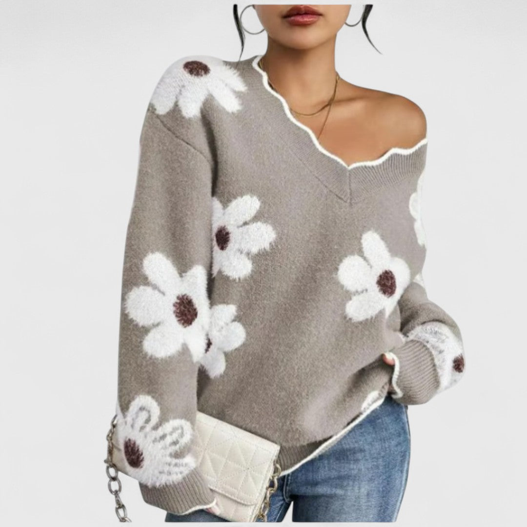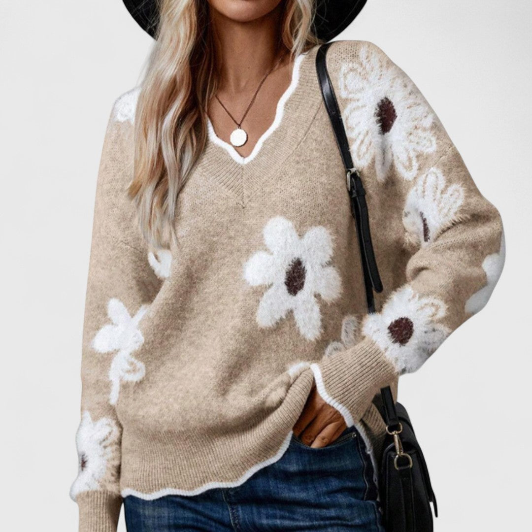 Zenobia - Suéter refinado con diseño floral y línea femenina