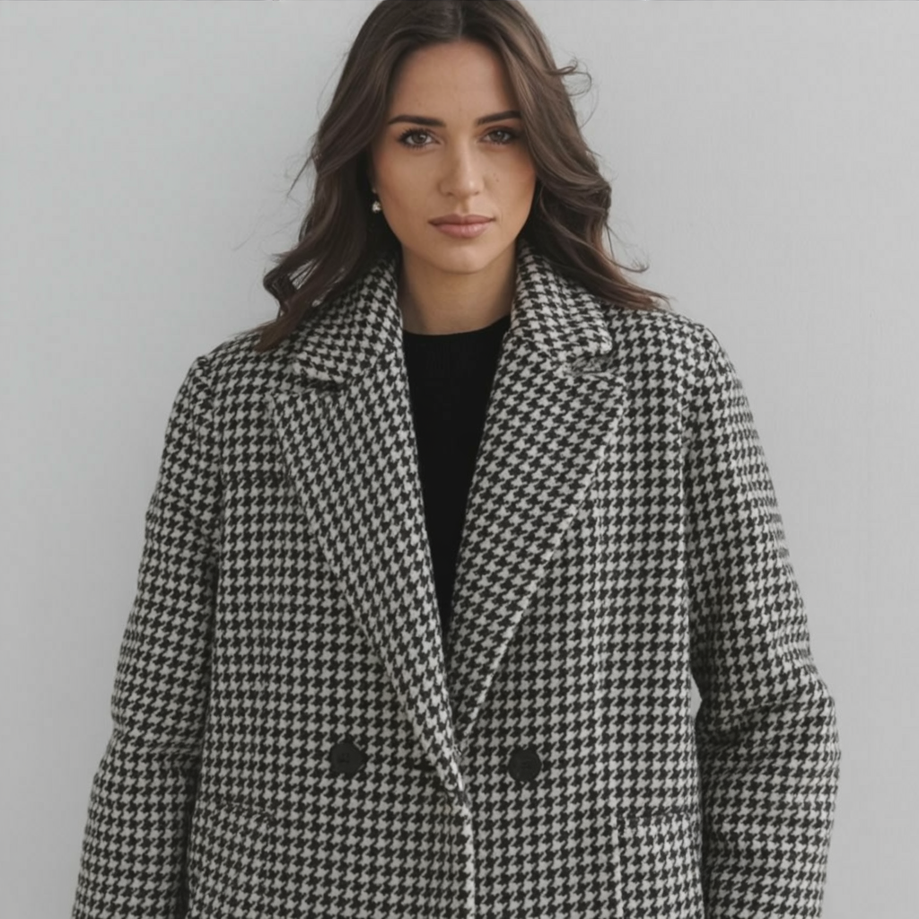Antígona, el elegante abrigo largo con línea atemporal, ofrece calidez y una sensación de lujo para cada paseo invernal por la ciudad.