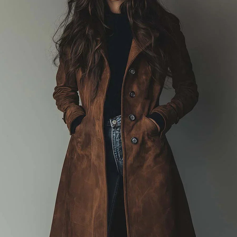El suave ante aporta un carácter noble al conjunto y garantiza comodidad en los días más fríos. Es una prenda ideal para superponer, perfecta tanto con vestidos como con pantalones.