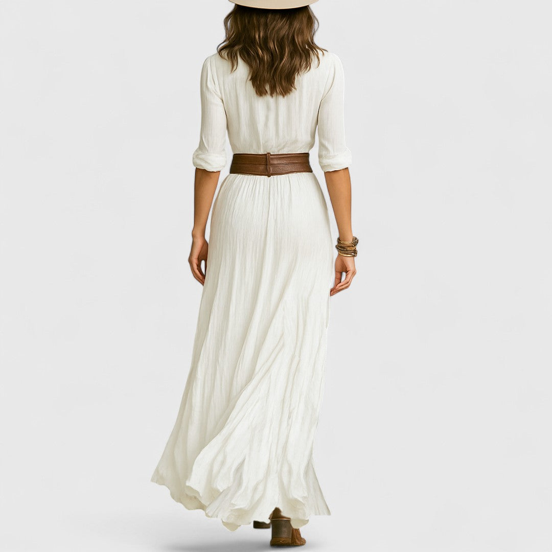 Kleoniki - Vestido largo de lino con elegante discreción y comodidad natural