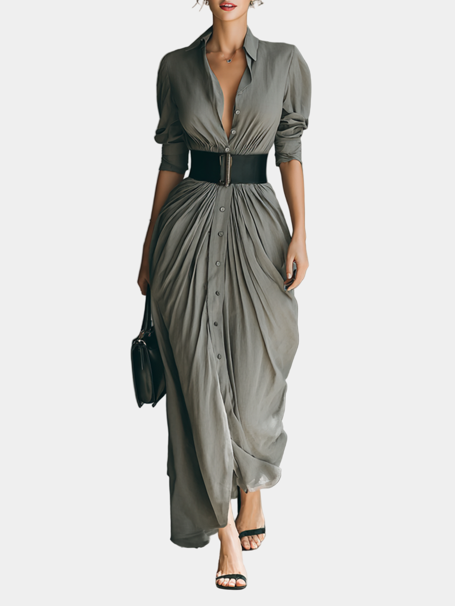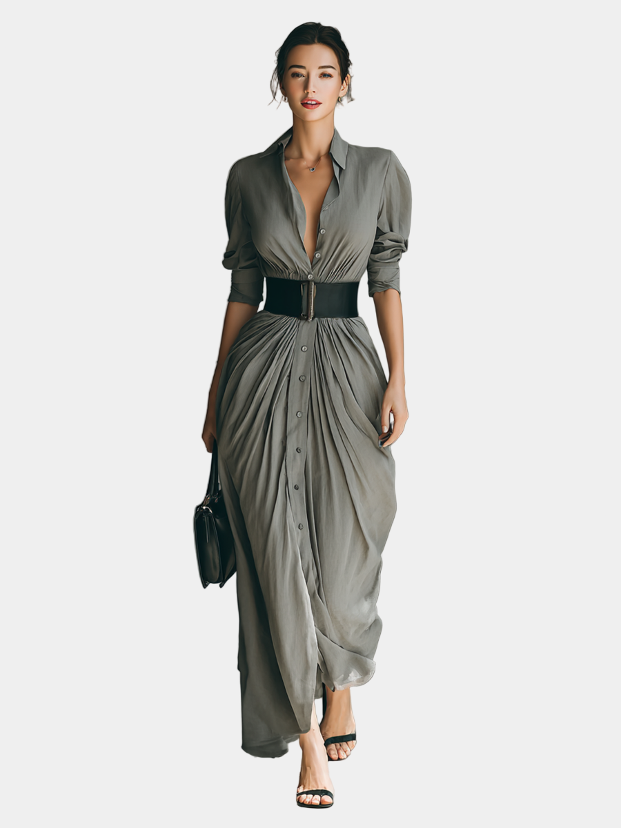El vestido Vida irradia elegancia atemporal con una estética moderna y refinada. El diseño fluido, los suaves pliegues plisados y el cinturón estructurado crean una silueta equilibrada que resalta la feminidad de manera discreta. Una pieza que se lleva cómodamente de la mañana a la noche y destaca sin exageraciones.